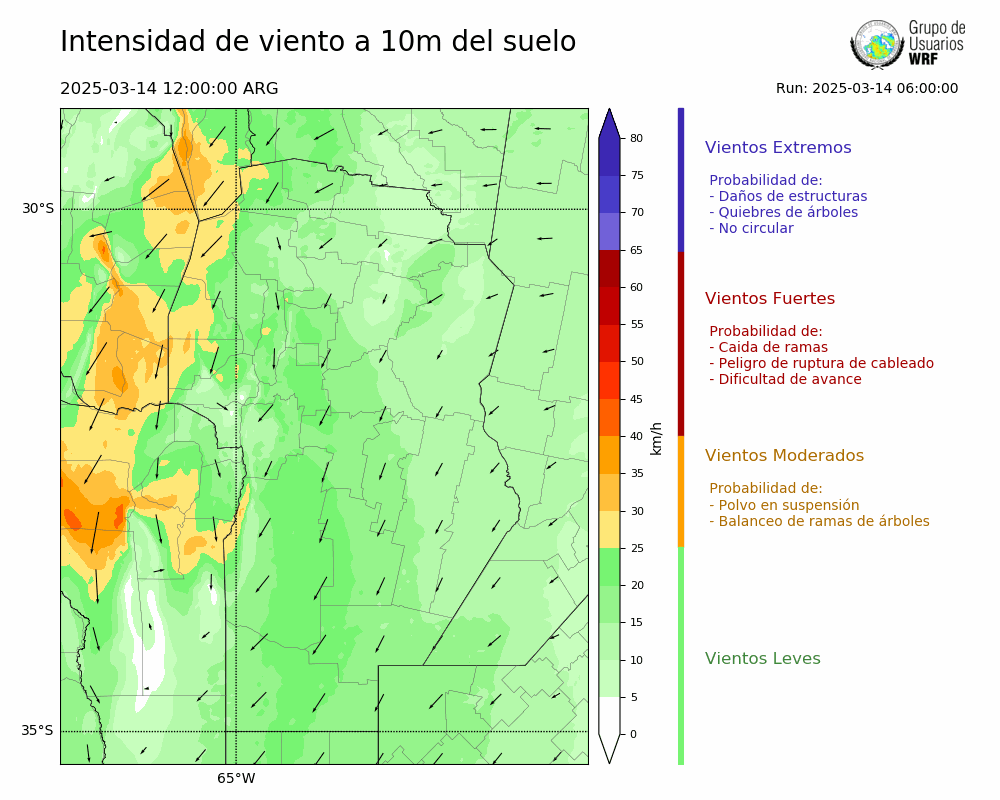 • Intensidad máxima: 25.13 km/h (14/03/2025 17hs.)
