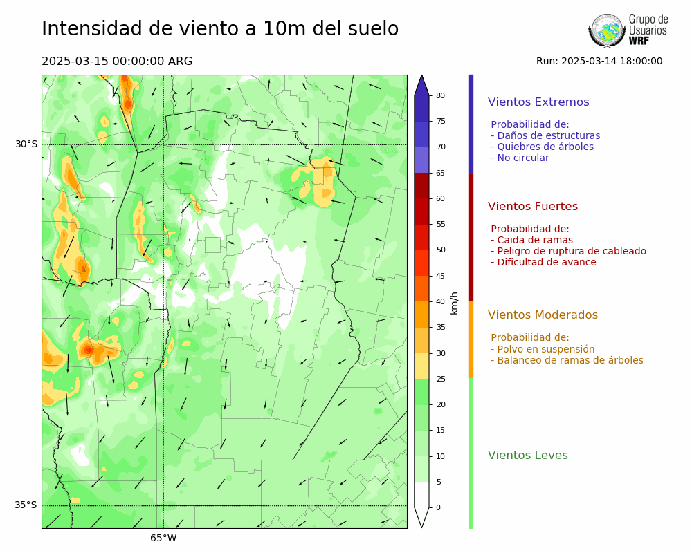 • Intensidad máxima: 4.44 km/h (15/03/2025 00hs.)