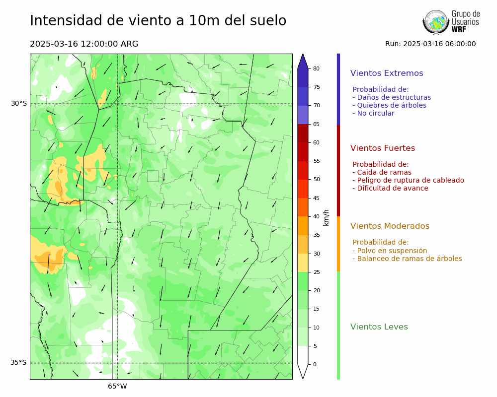 • Intensidad máxima: 25.33 km/h (16/03/2025 12hs.)
