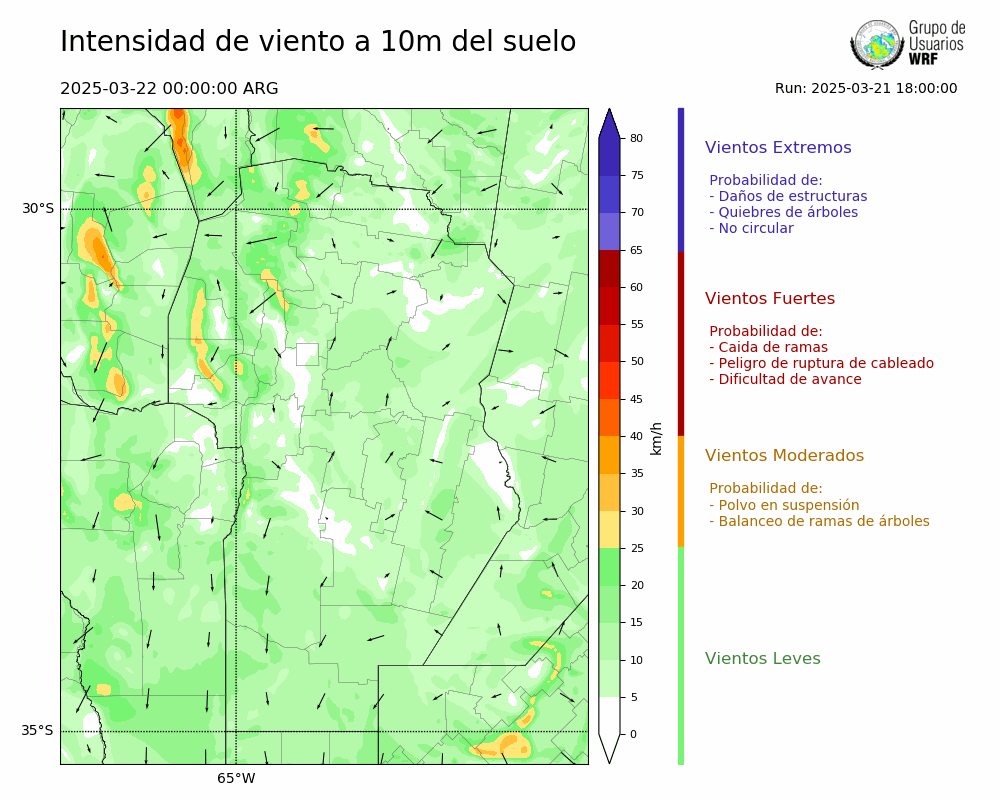 • Intensidad máxima: 10.41 km/h (22/03/2025 10hs.)