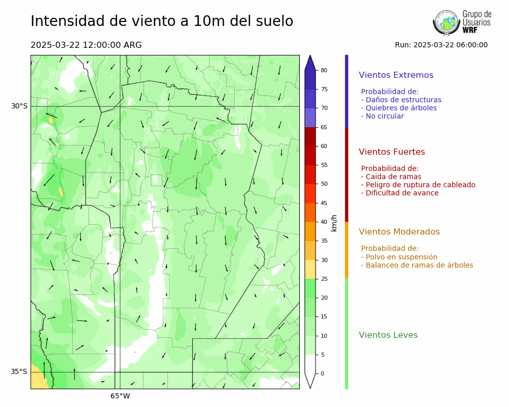 • Intensidad máxima: 21.32 km/h (22/03/2025 16hs.)