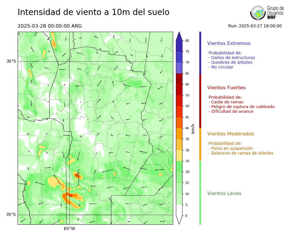 • Intensidad máxima: 9.25 km/h (28/03/2025 07hs.)