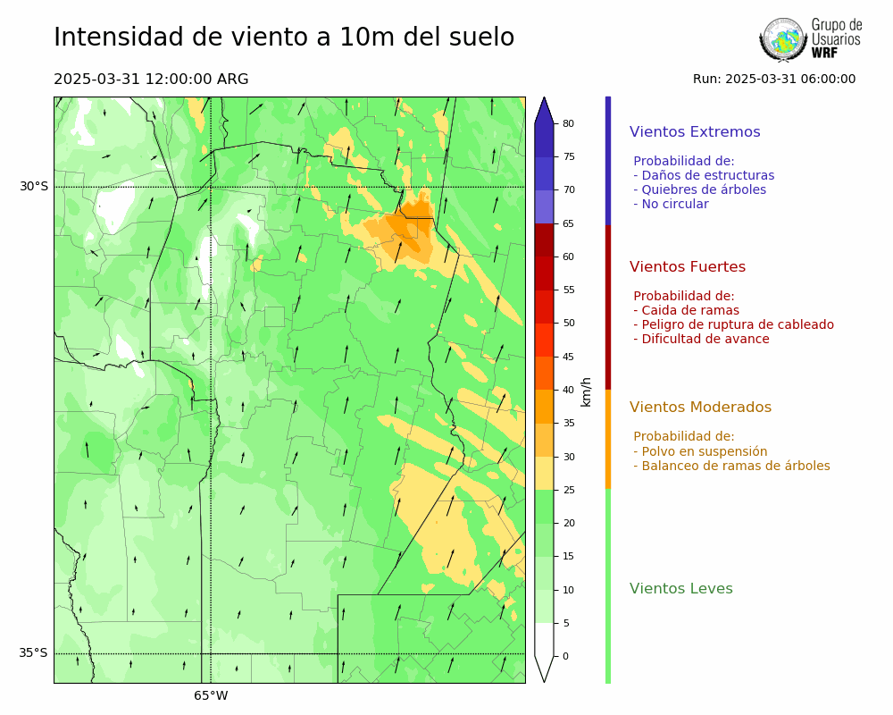 • Intensidad máxima: 19.67 km/h (31/03/2025 12hs.)