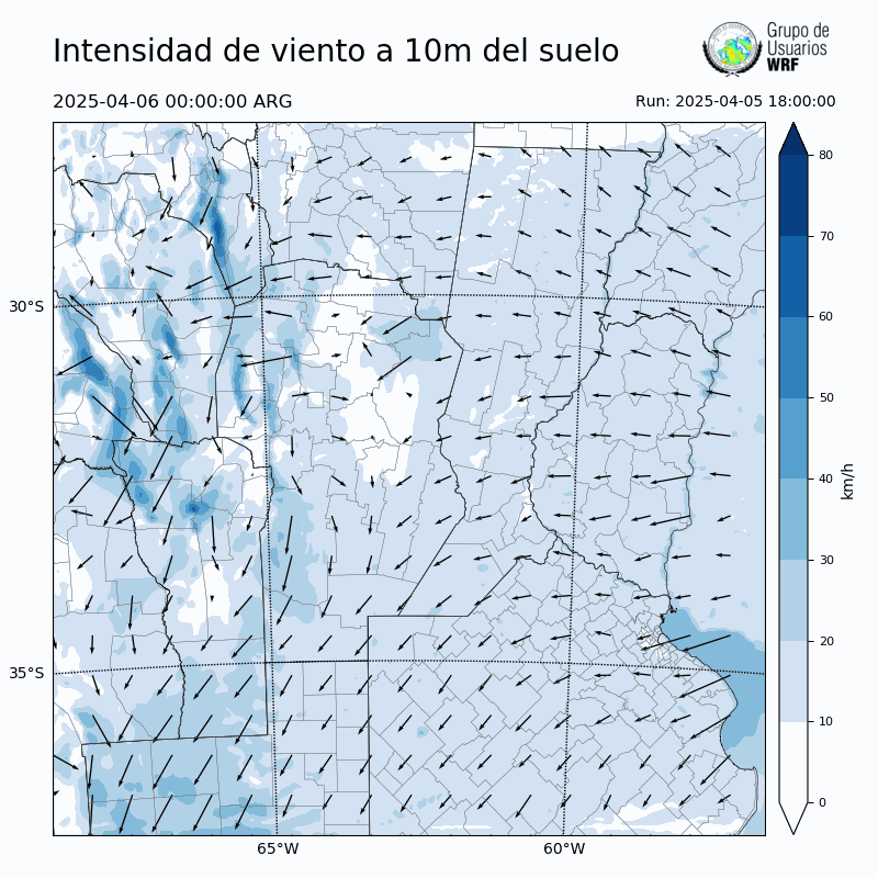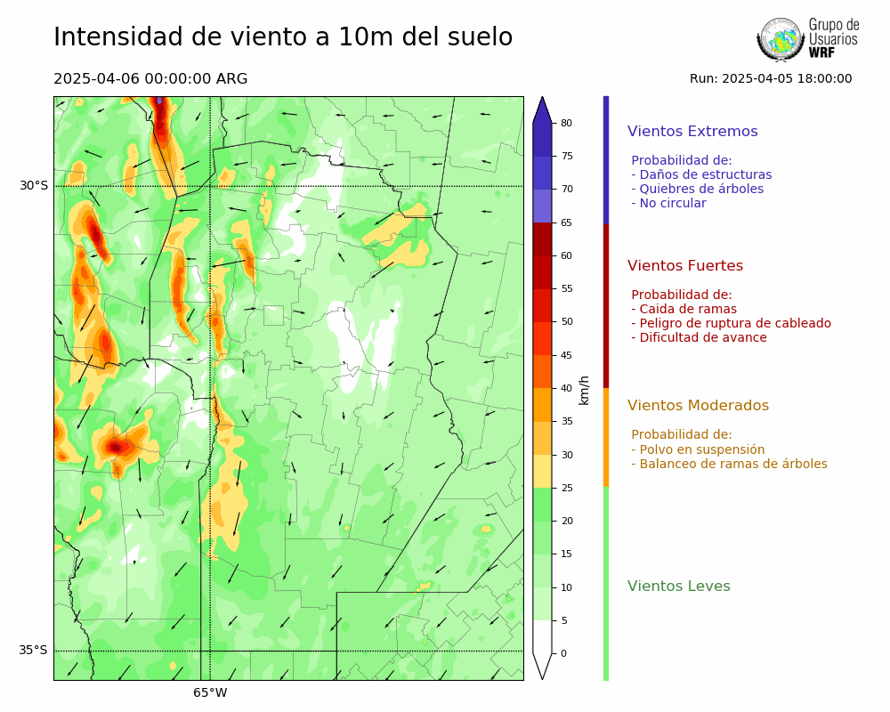 • Intensidad máxima: 20.21 km/h (06/04/2025 09hs.)