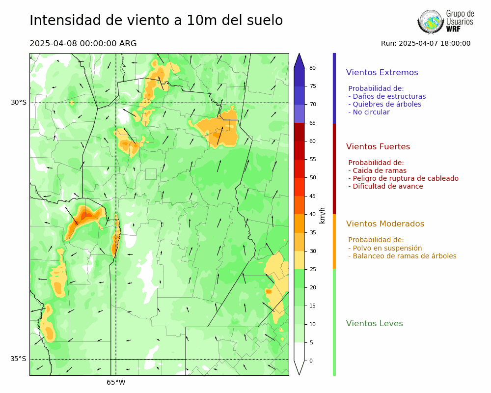 • Intensidad máxima: 14.58 km/h (08/04/2025 11hs.)