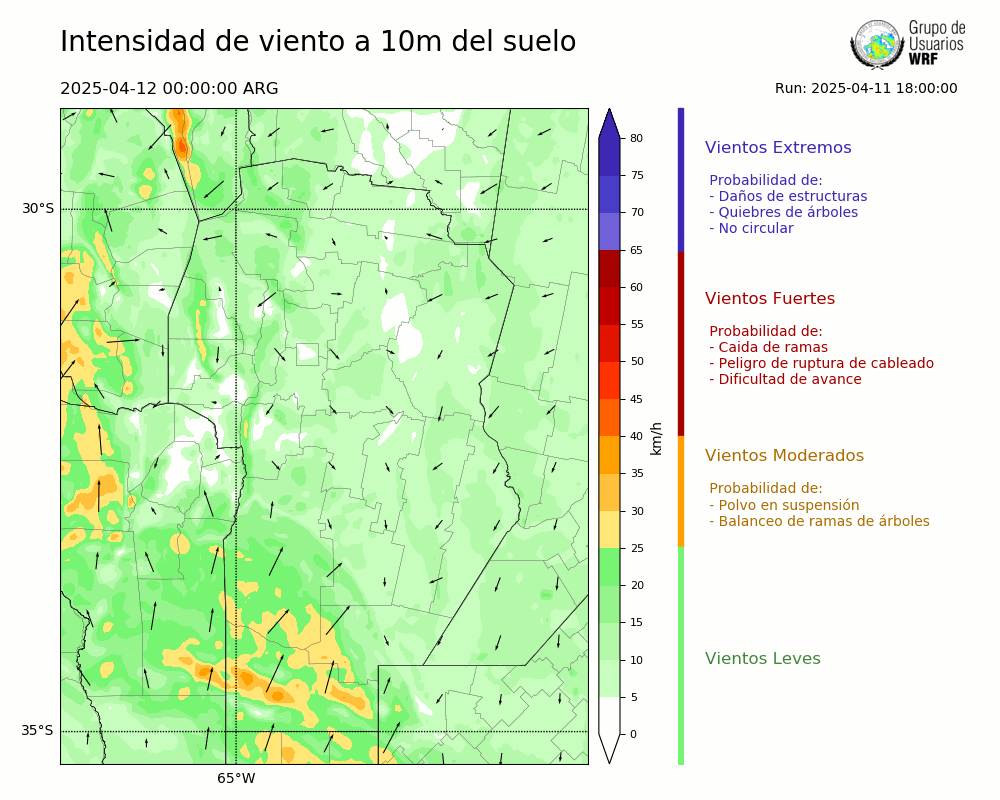 • Intensidad máxima: 24.79 km/h (12/04/2025 06hs.)