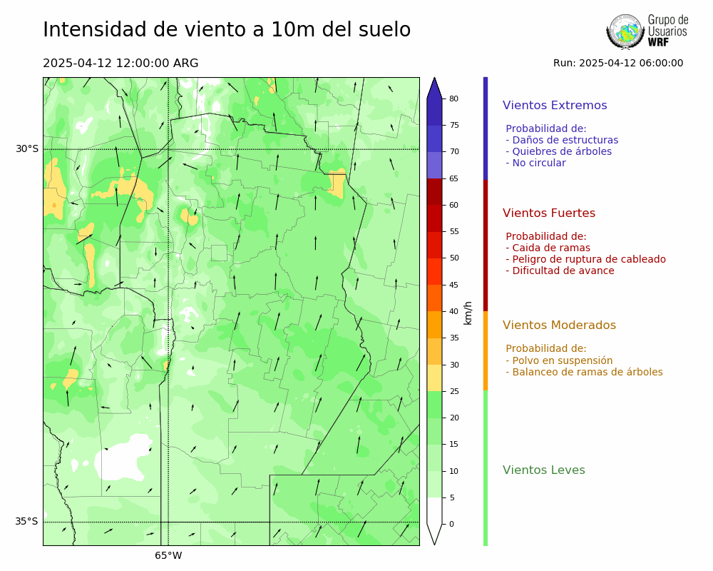 • Intensidad máxima: 13.52 km/h (12/04/2025 19hs.)