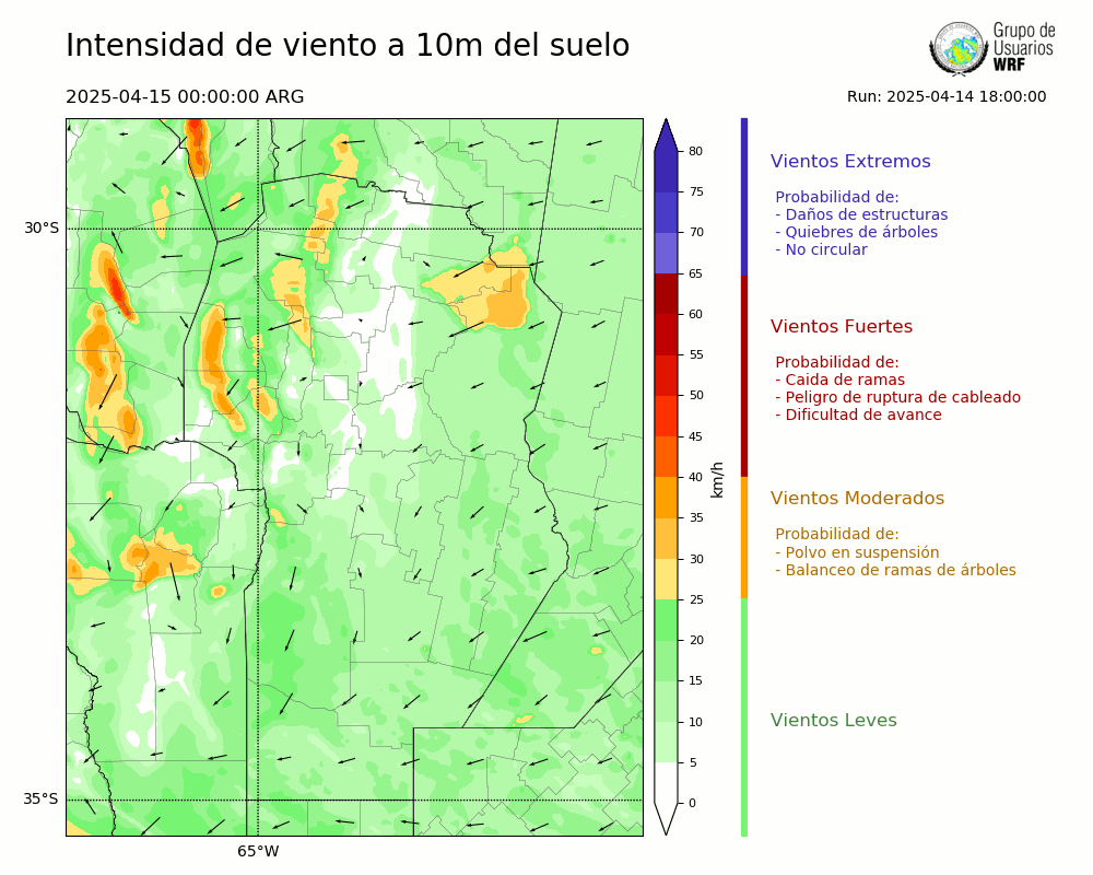 • Intensidad máxima: 18.57 km/h (15/04/2025 09hs.)