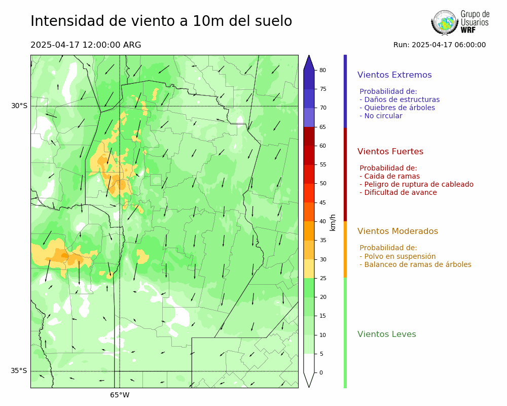 • Intensidad máxima: 7.59 km/h (19/04/2025 16hs.)