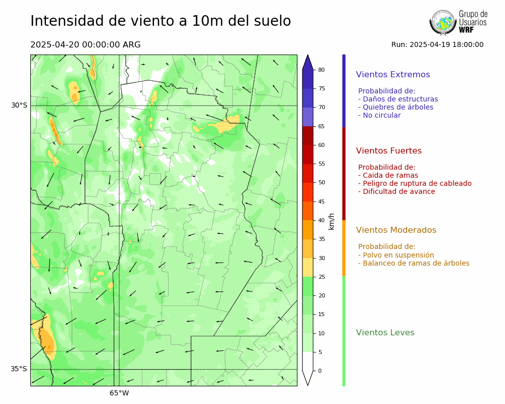 • Intensidad máxima: 16.99 km/h (20/04/2025 11hs.)