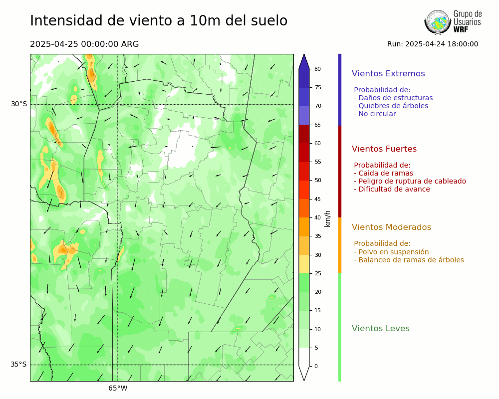 • Intensidad máxima: 17.25 km/h (25/04/2025 18hs.)