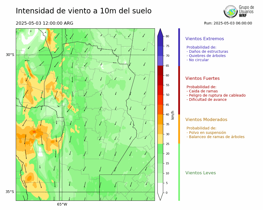 • Intensidad máxima: 24.54 km/h (03/05/2025 12hs.)