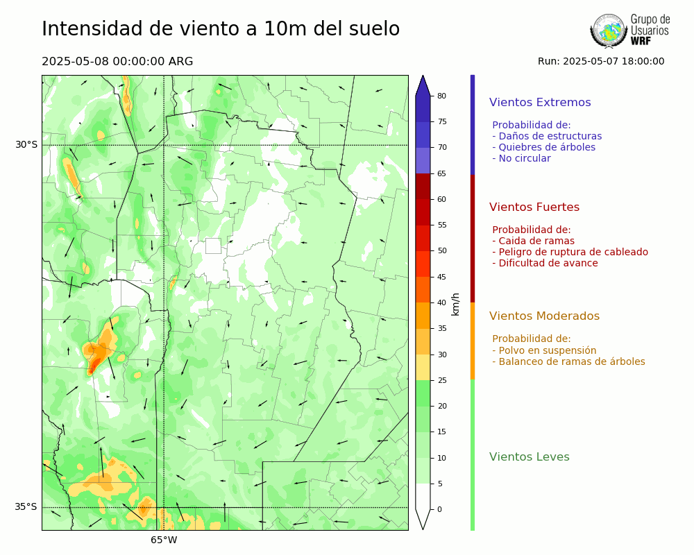 • Intensidad máxima: 1.20 km/h (10/05/2025 06hs.)