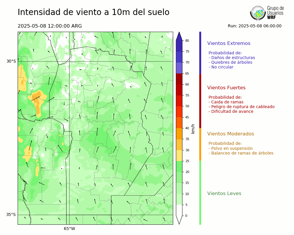 • Intensidad máxima: 17.33 km/h (08/05/2025 14hs.)