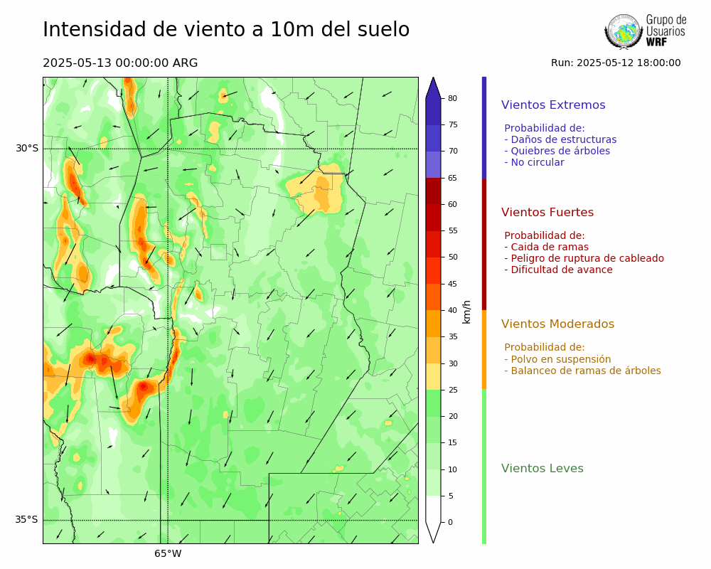 • Intensidad máxima: 24.77 km/h (13/05/2025 02hs.)