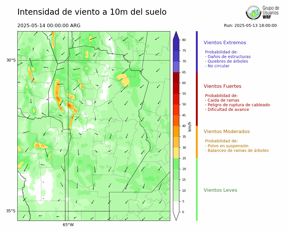 • Intensidad máxima: 6.77 km/h (14/05/2025 11hs.)