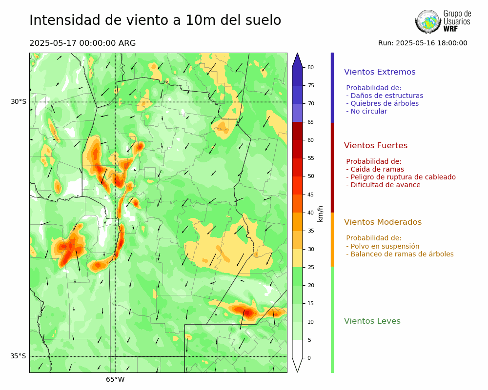 • Intensidad máxima: 16.77 km/h (17/05/2025 00hs.)