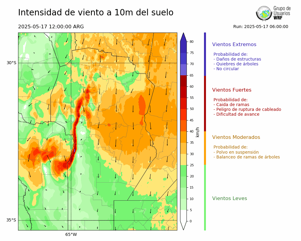 • Intensidad máxima: 12.43 km/h (17/05/2025 12hs.)