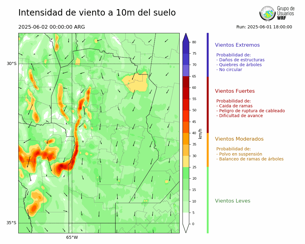 • Intensidad máxima: 7.60 km/h (04/06/2025 03hs.)