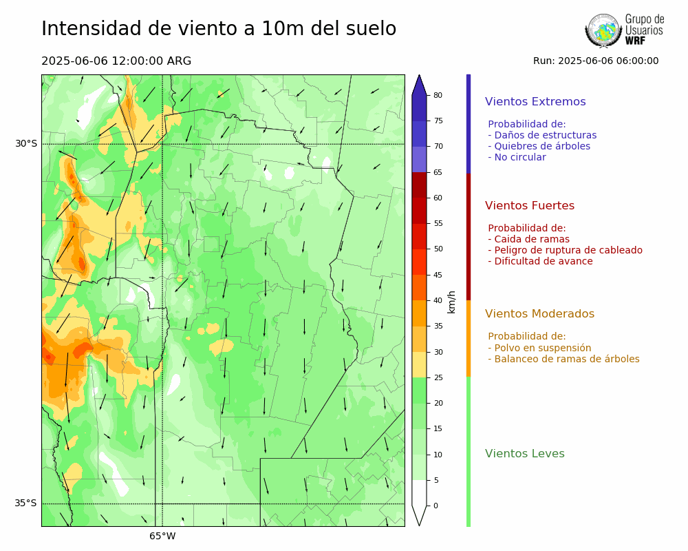• Intensidad máxima: 18.34 km/h (06/06/2025 15hs.)
