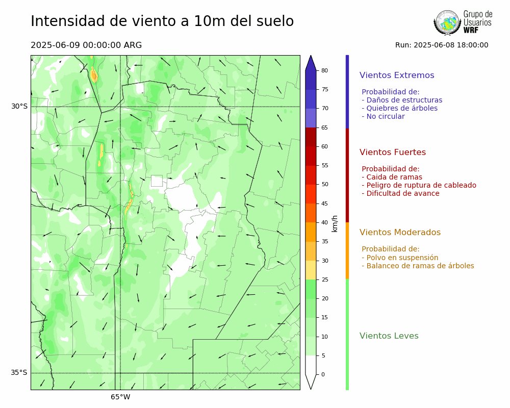 • Intensidad máxima: 12.93 km/h (09/06/2025 11hs.)
