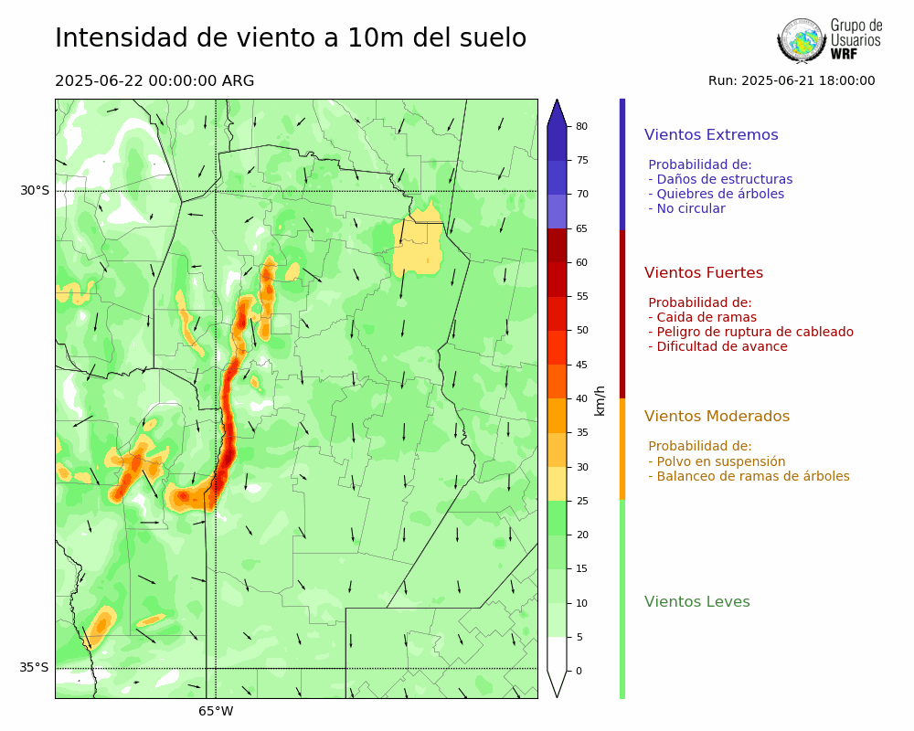 • Intensidad máxima: 14.75 km/h (22/06/2025 07hs.)