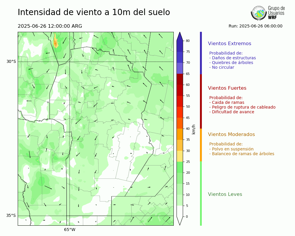 • Intensidad máxima: 10.93 km/h (26/06/2025 18hs.)