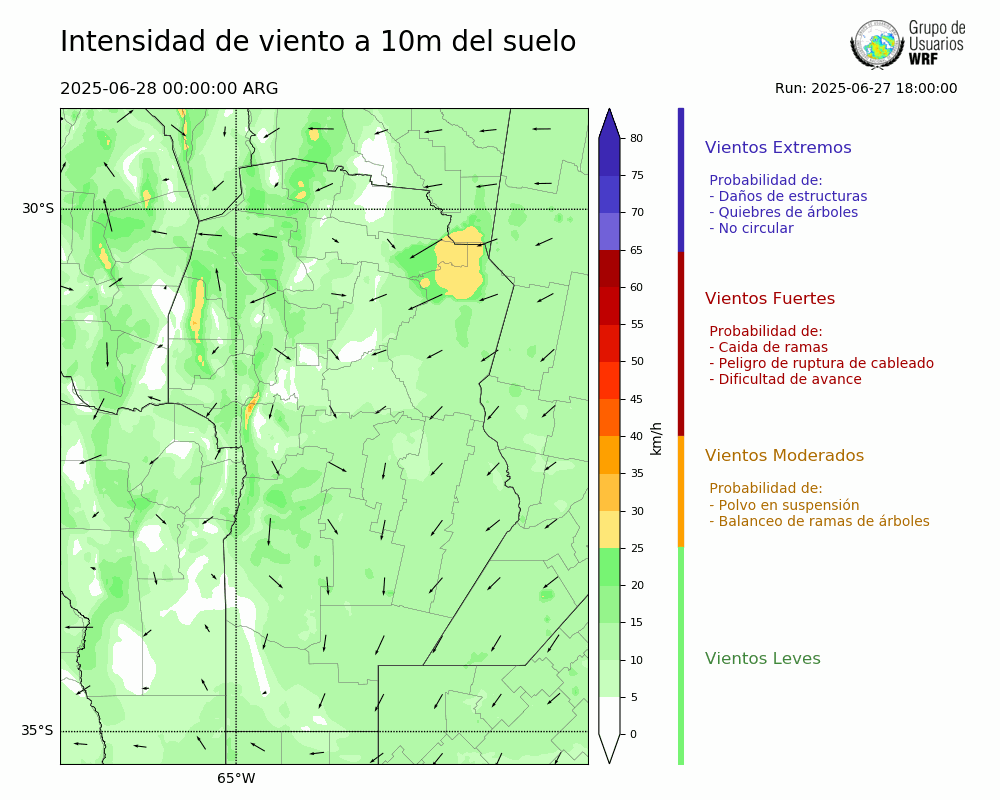 • Intensidad máxima: 6.56 km/h (28/06/2025 12hs.)