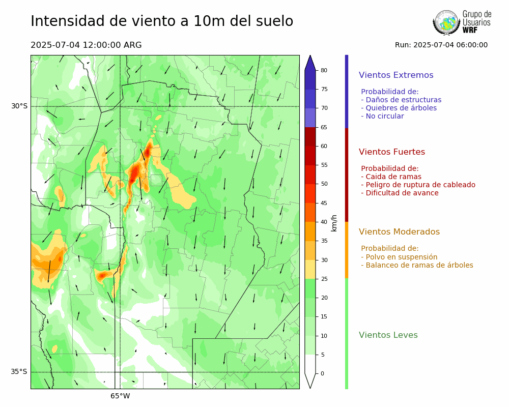 • Intensidad máxima: 11.18 km/h (06/07/2025 02hs.)