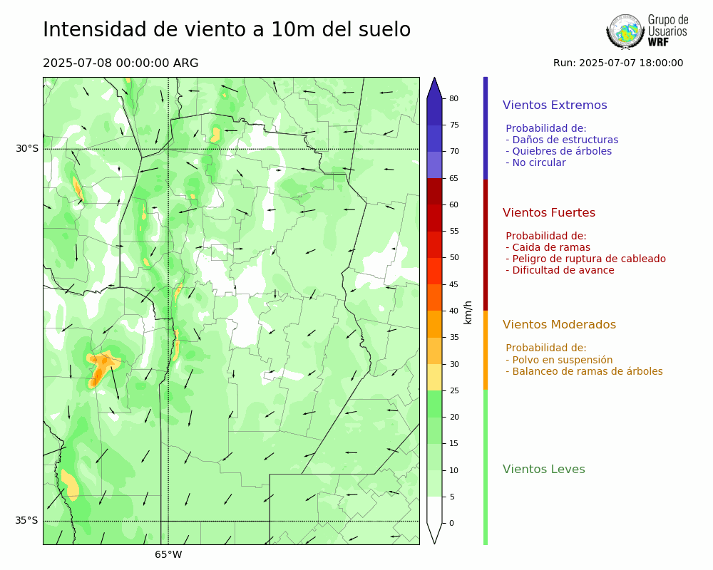 • Intensidad máxima: 3.68 km/h (08/07/2025 01hs.)