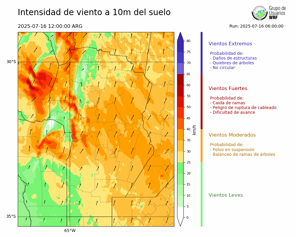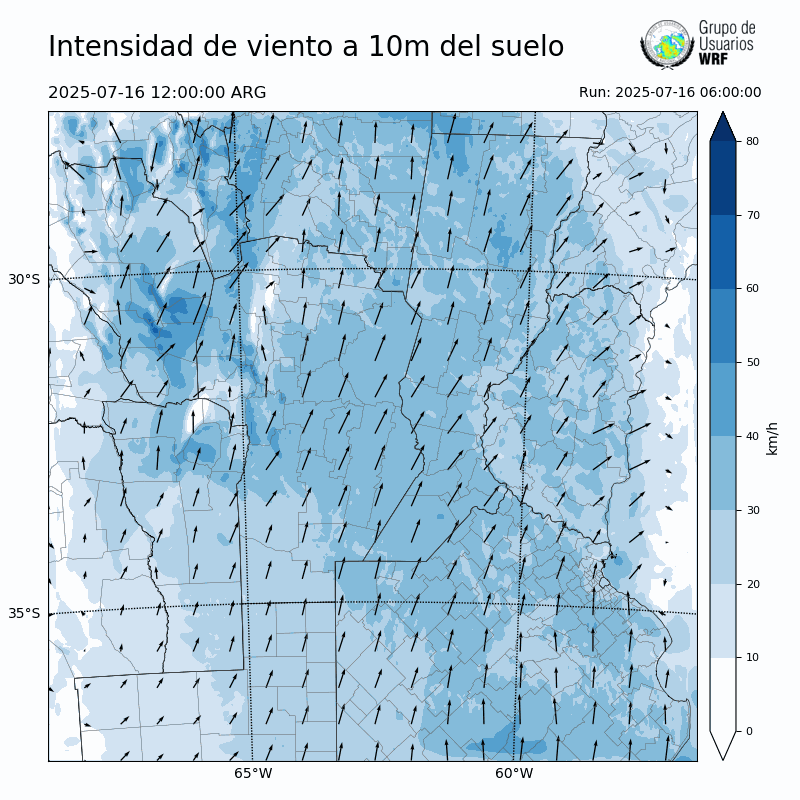 • Intensidad máxima: 26.81 km/h (16/07/2025 13hs.)