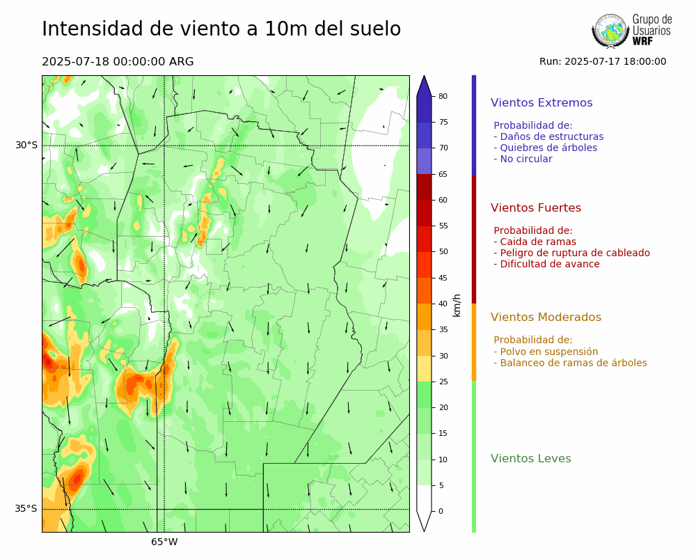 • Intensidad máxima: 8.32 km/h (18/07/2025 09hs.)