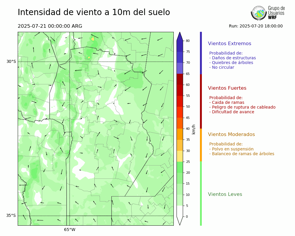 • Intensidad máxima: 8.41 km/h (21/07/2025 06hs.)