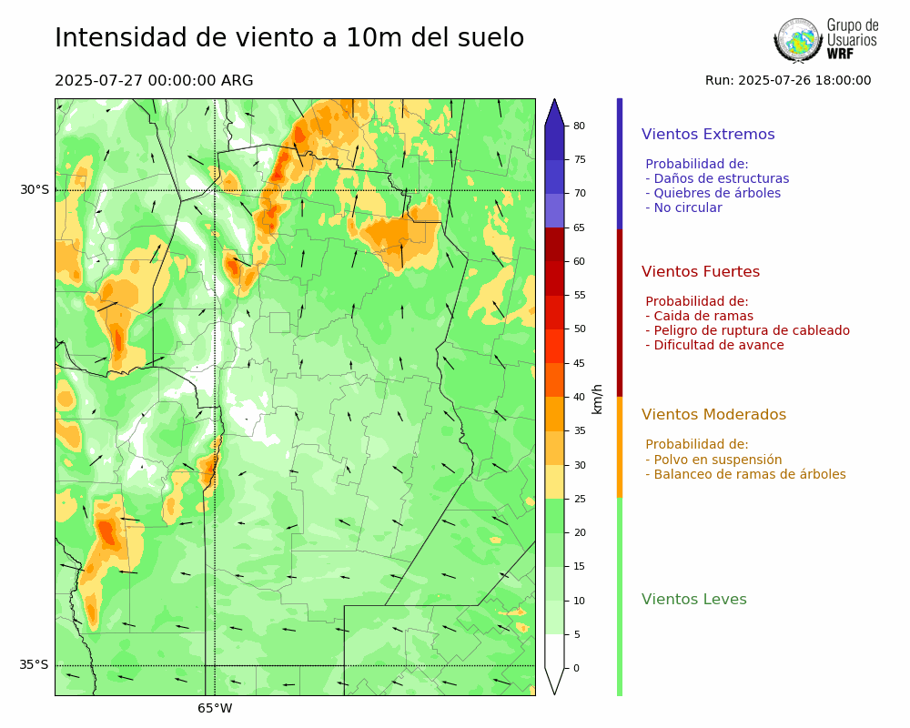 • Intensidad máxima: 12.60 km/h (27/07/2025 11hs.)