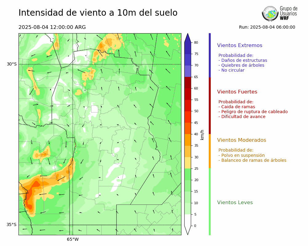 • Intensidad máxima: 12.20 km/h (04/08/2025 19hs.)