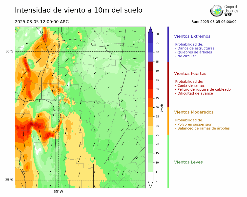 • Intensidad máxima: 6.58 km/h (06/08/2025 21hs.)