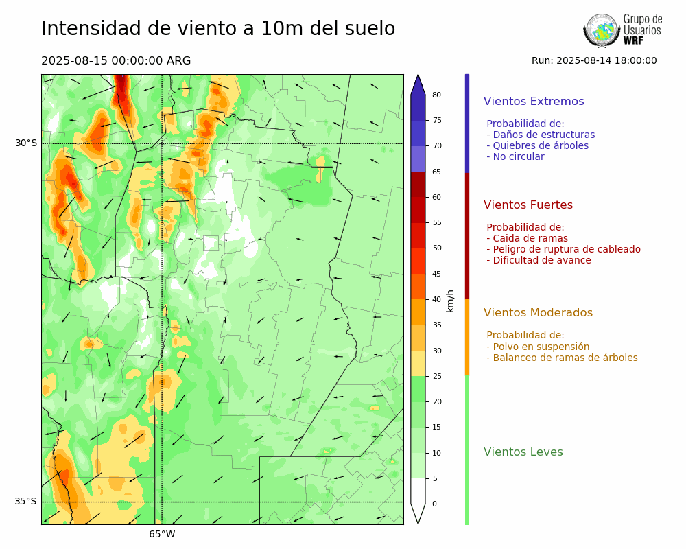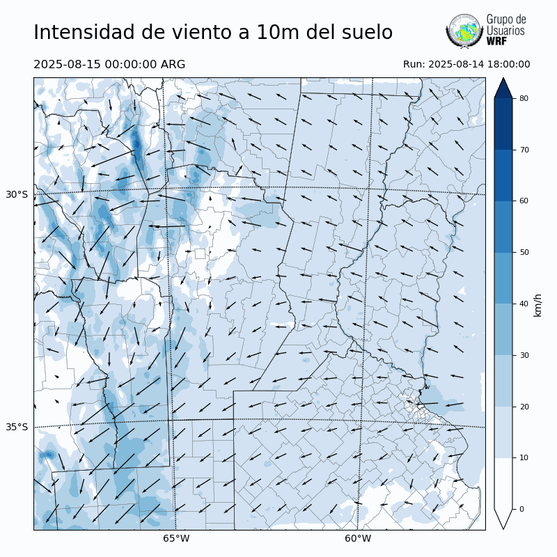 • Intensidad máxima: 10.17 km/h (15/08/2025 06hs.)