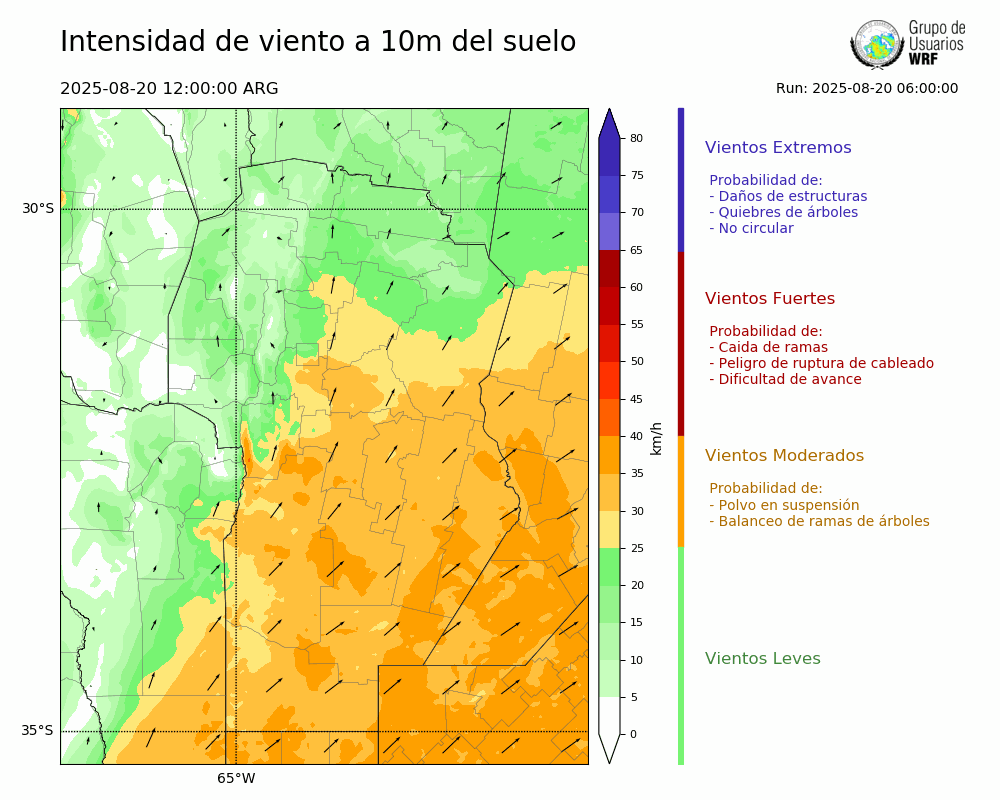 • Intensidad máxima: 20.66 km/h (20/08/2025 12hs.)