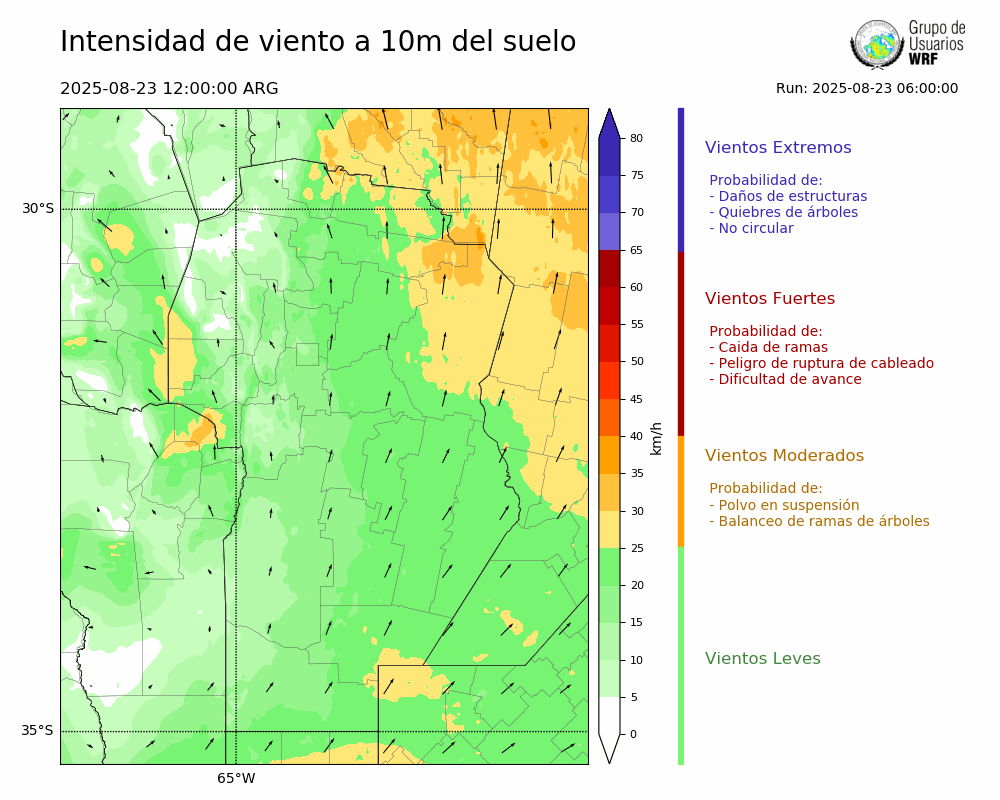 • Intensidad máxima: 14.49 km/h (23/08/2025 12hs.)