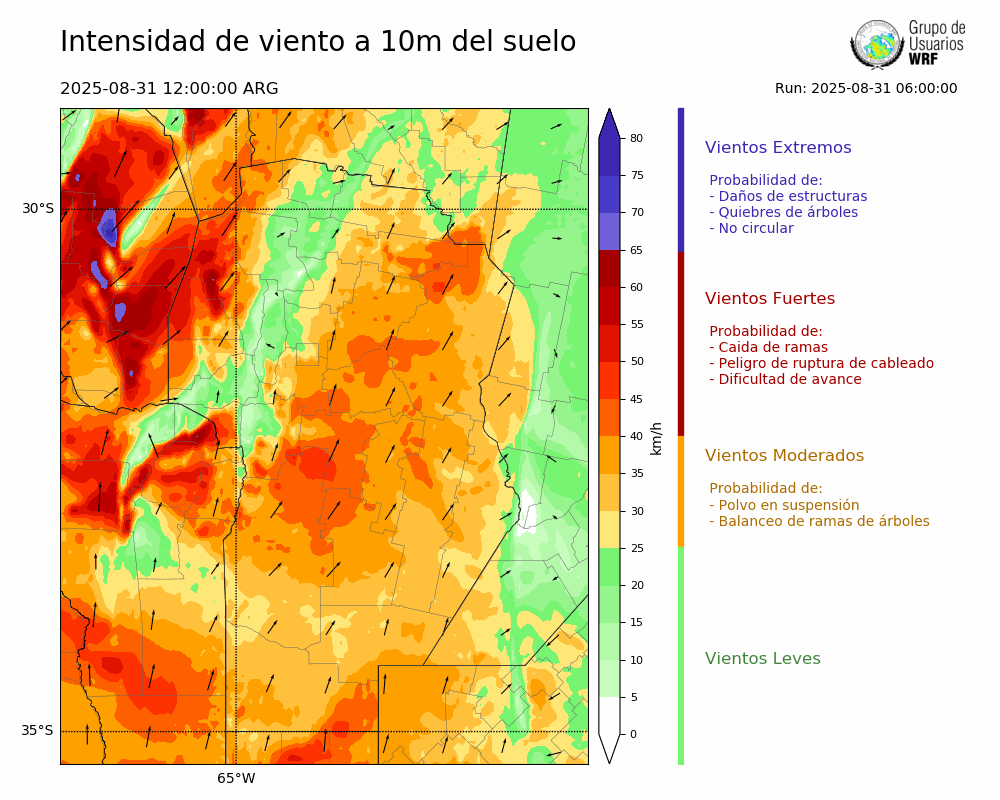 • Intensidad máxima: 9.20 km/h (02/09/2025 20hs.)
