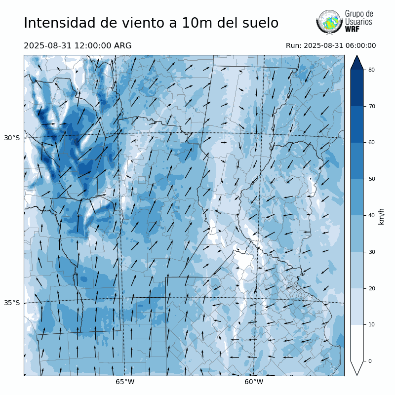 • Intensidad máxima: 25.35 km/h (31/08/2025 12hs.)