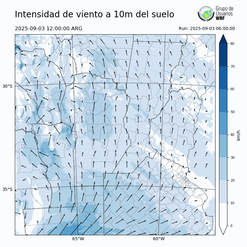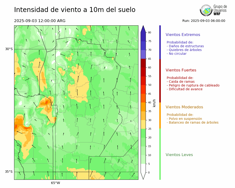 • Intensidad máxima: 19.01 km/h (03/09/2025 12hs.)