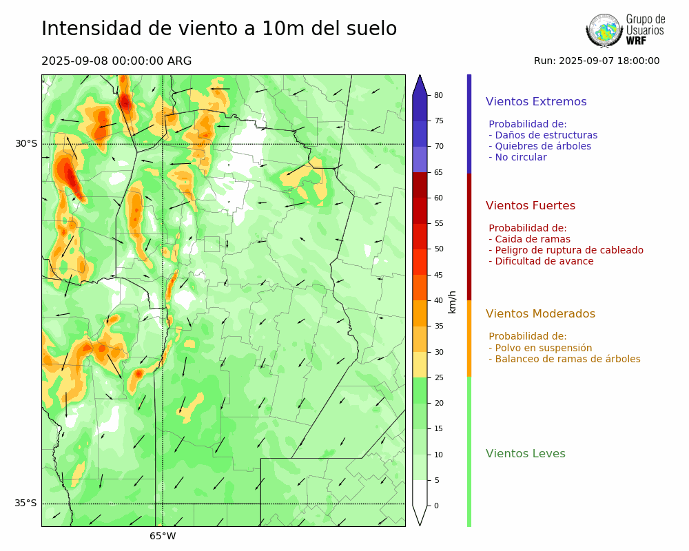 • Intensidad máxima: 12.31 km/h (08/09/2025 08hs.)