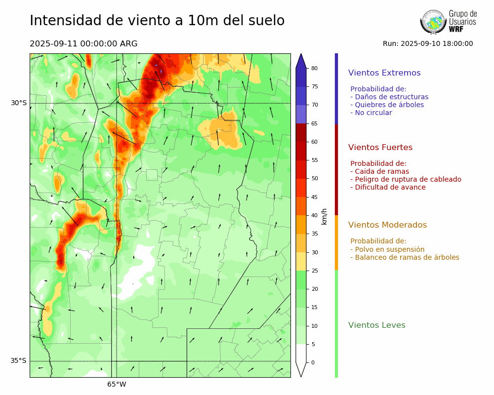 • Intensidad máxima: 9.95 km/h (11/09/2025 02hs.)