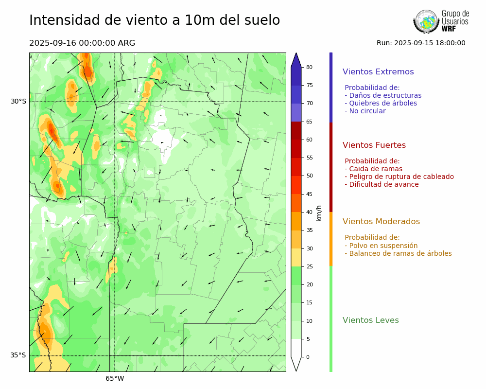 • Intensidad máxima: 12.97 km/h (16/09/2025 10hs.)