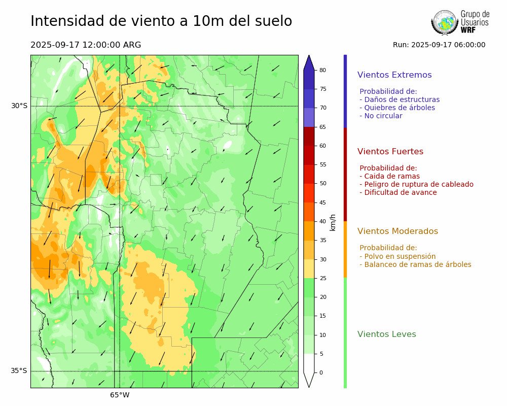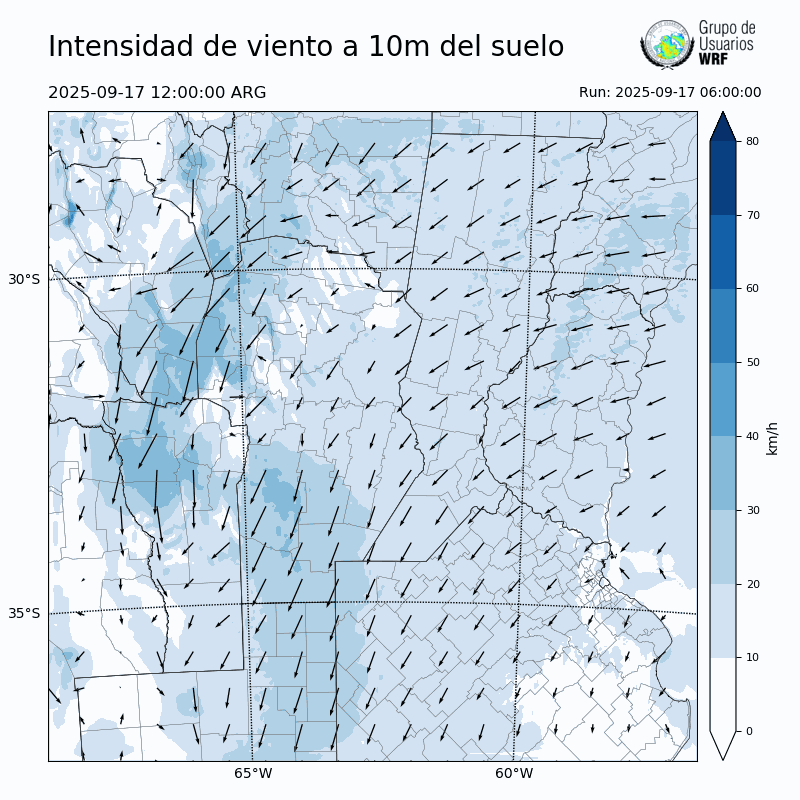 • Intensidad máxima: 13.34 km/h (17/09/2025 17hs.)