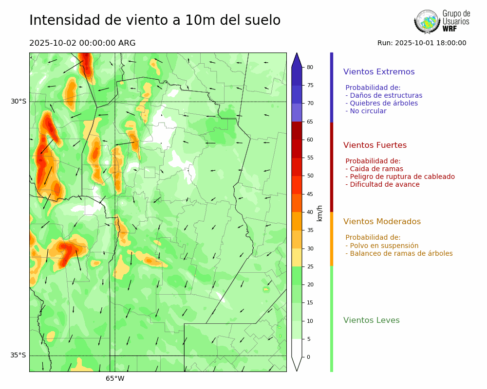 • Intensidad máxima: 14.04 km/h (02/10/2025 10hs.)