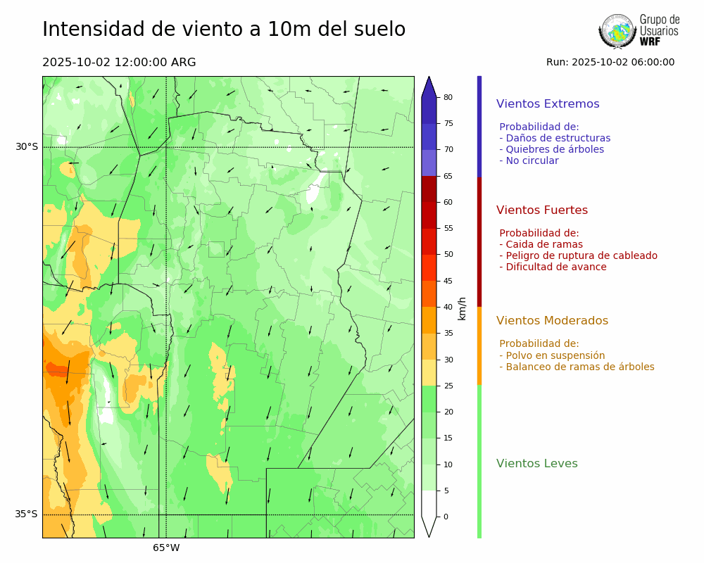 • Intensidad máxima: 19.23 km/h (02/10/2025 20hs.)