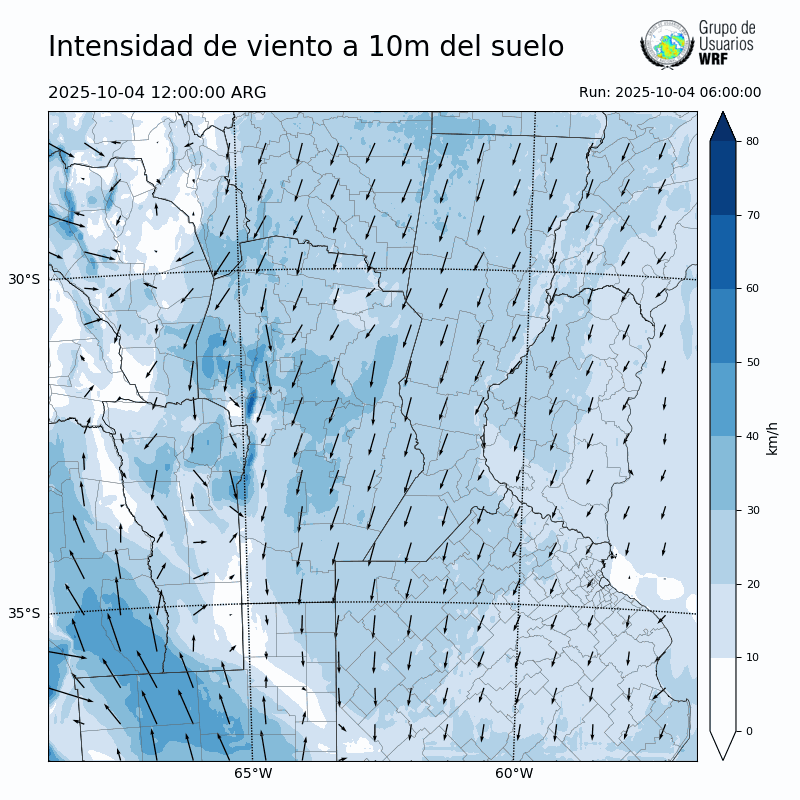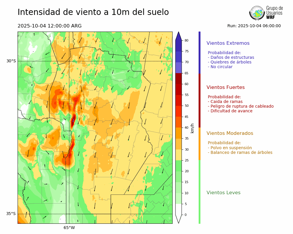 • Intensidad máxima: 27.79 km/h (05/10/2025 09hs.)
