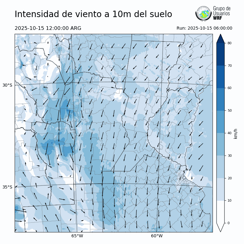 • Intensidad máxima: 20.66 km/h (15/10/2025 17hs.)
